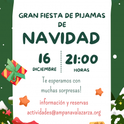 Inscripción: pincha en el siguiente enlace. Estimadas familias, Ya está aquí Diciembre. Es un mes lleno de actividades, encuentros y luz. Os proponemos una noche de pijamas, para que los padres y madres podáis disfrutar de una noche para vosotros sabiendo que vuestros hijos están cuidados y pasándolo en grande. Esta vez, como no, nos hemos Leer másNoche de pijamas de INVIERNO: 16 de diciembre de 2022[…]