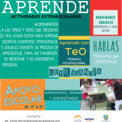 Estimadas familias, ¡Celebramos 15 años de Aprende! Fue el 2006 cuando arrancó el proyecto Aprende con el apoyo de profesionales, familias del AMPA y del colegio. Así que este curso cumplimos 15 años apoyando por las tardes a los alumnos y alumnas con dificultades para que puedan seguir el ritmo de las clases por las Leer másProyecto Aprende[…]