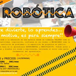 Tenemos la grata noticia que anunciaros que este año se va a poner en marcha la nueva actividad Extraescolar: Robótica. Inscripción Robótica En esta actividad queremos que los alumnos conozcan y aprendan a relacionarse con los robots y autómatas de una forma divertida, significativa y segura. Asimilando conceptos sobre electricidad, física, potencia, lógica, estética, software, Leer másNueva Extraescolar: Robótica[…]